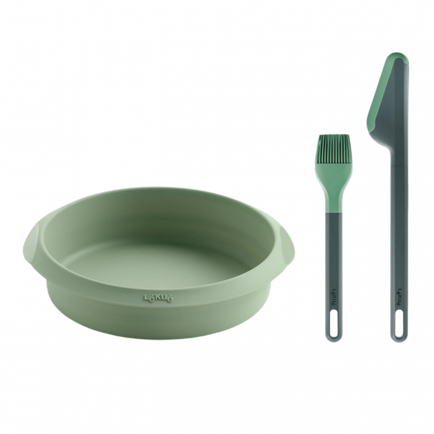 Kitet innehåller en silikonform, en tång och en pensel. Formen i 100 procent silikon har non stick yta som ger jämnt resultat och smidig rengöring. Den passar 5 liters air fryers. Tången har silikonklädda spetsar som inte repar ytan och penseln gör det enkelt att fördela olja eller sås.