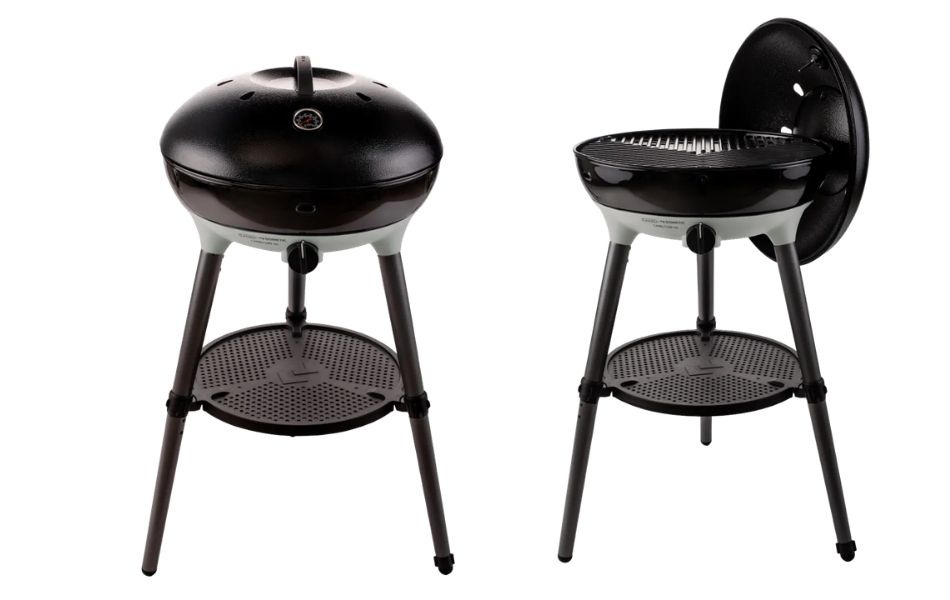 Grillen levereras med grillgaller, kastrullstöd och lock med inbyggd termometer som ger full kontroll över temperaturen. Locket fungerar även som vindskydd och stänkskydd, vilket gör matlagningen enklare även i tuffare väder. Den kraftfulla brännaren med piezotändning ger snabb uppvärmning och jämn värmefördelning tack vare integrerad värmespridare.