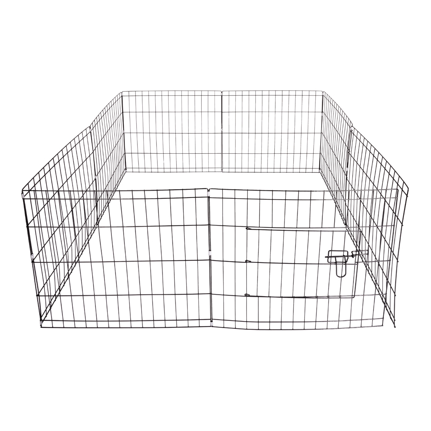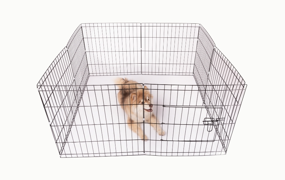 De åtta sektionerna monteras enkelt ihop och kan placeras i olika former beroende på utrymme och behov. Konstruktionen gör det lätt att anpassa hagen för både valpar och vuxna hundar.