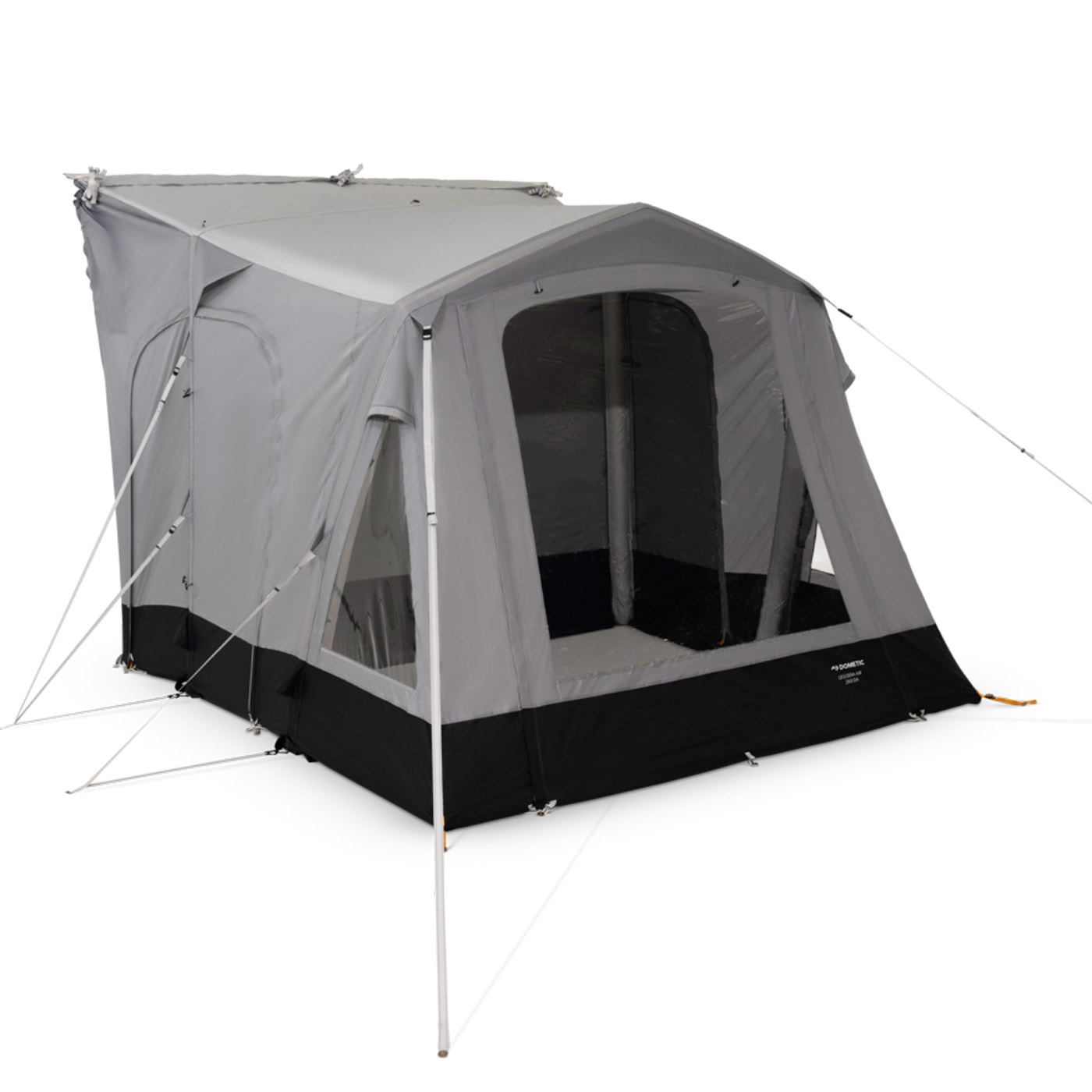 Leggera Air 260 DA består av två delar: en tältdel och en slussdel. Slussen fungerar både som anslutning till ditt fordon och som praktisk förvaringsyta när du är på plats. När du lämnar tältet kan sidan mot fordonet täckas, vilket förvandlar förtältet till ett fristående, skyddat utrymme som står emot väder och vind.