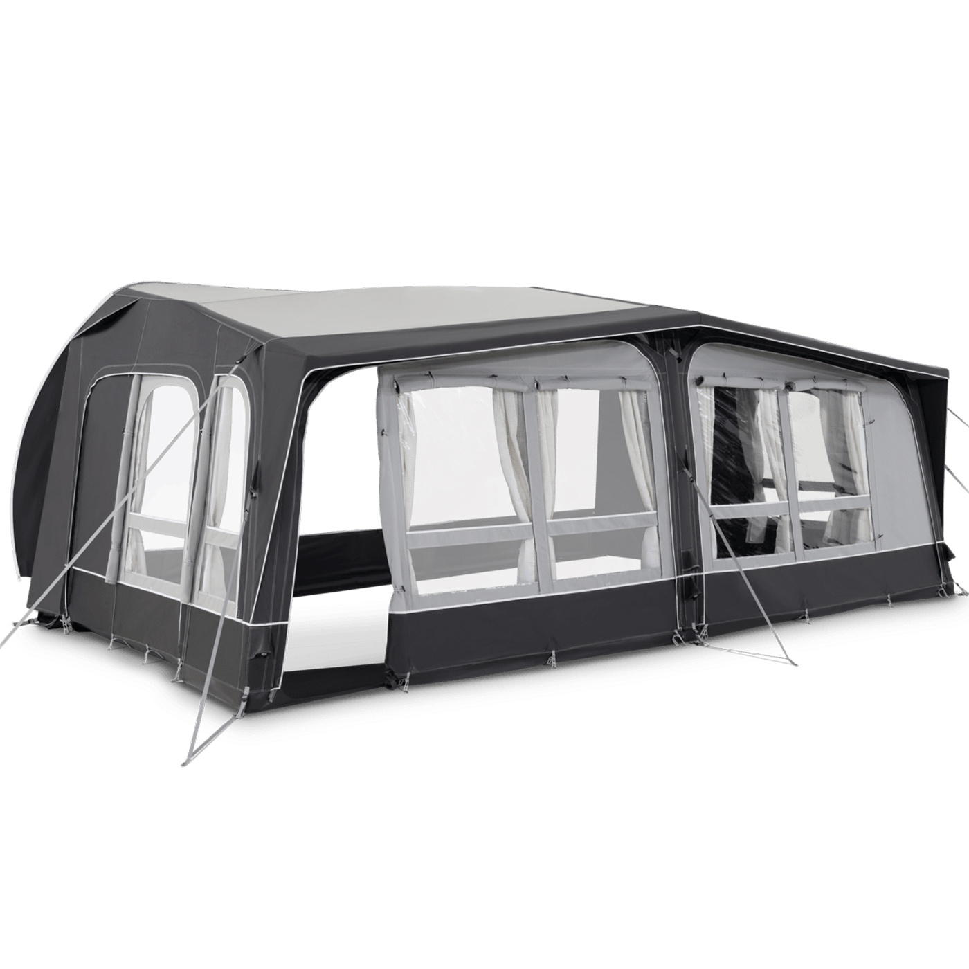 Dometic Residence-förtältet har ett integrerat uppblåsbar baldakin, externa fönstergardiner med blixtlås och avtagbara front- och sidopaneler. Den andningsbara konstruktionen av polybomull-materialet, gjort för att hålla länge, gör detta förtält extremt motståndskraftigt mot hårt väder och långa platsvistelser när som helst under året.