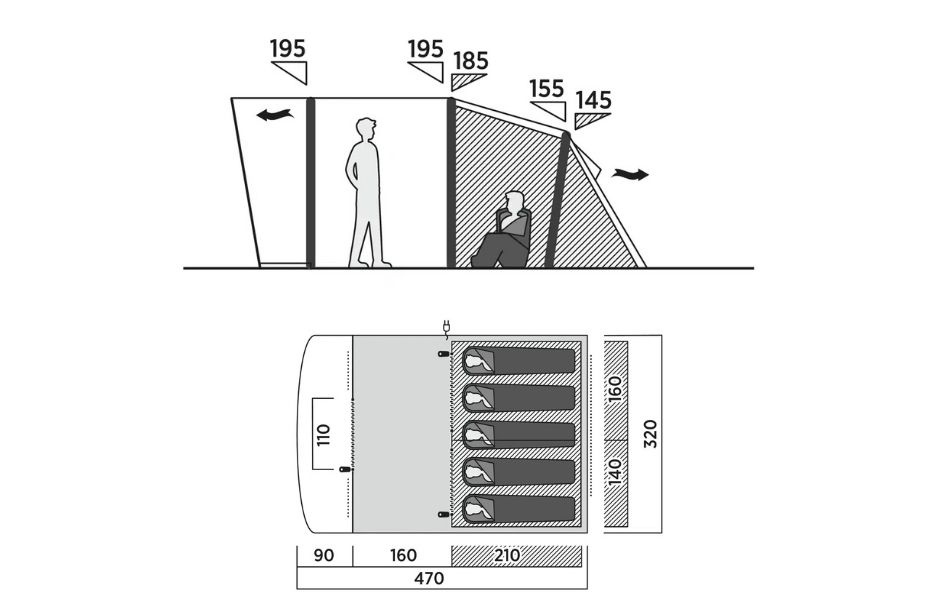 - Rymligt familjetunneltält med stort vardagsrum och regnskyddad frontingång