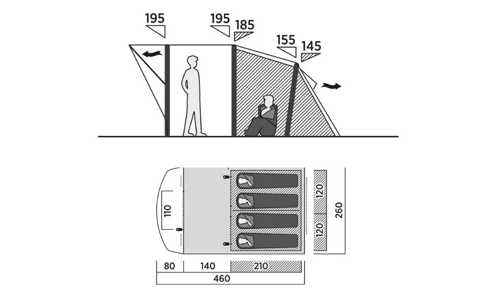 - Organiseringsfickor och sovrumsavdelare för extra komfort