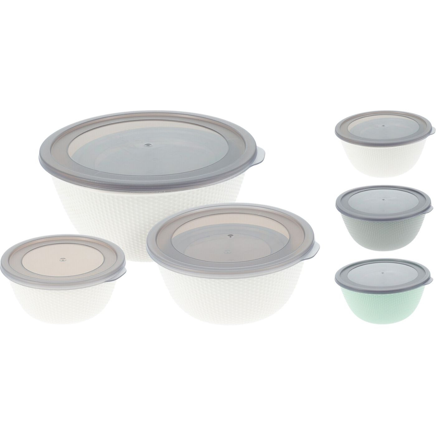 Set med tre staplingsbara förvaringsboxar i plast, alla med lock för enkel och säker förvaring. Perfekt för att hålla ordning på prylar hemma, i garaget eller på resan.