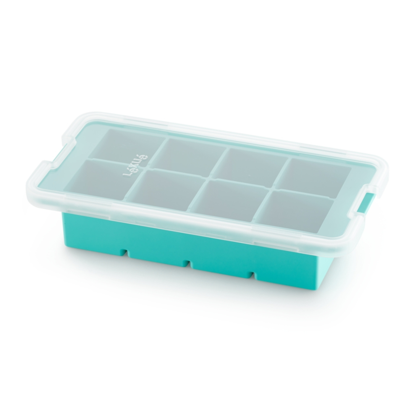 Formen gör 8 stora isbitar åt gången. Den flexibla silikonbasen gör dem enkla att trycka ut med fin form varje gång. Fyll, sätt på locket och ställ i frysen. Locket skyddar mot fryslukt och gör att formen kan staplas för smartare förvaring.
