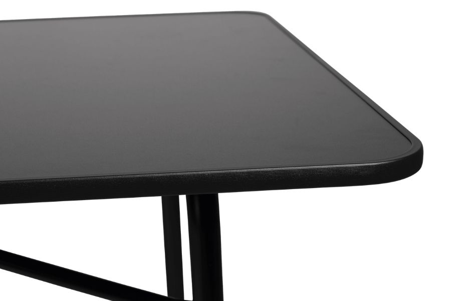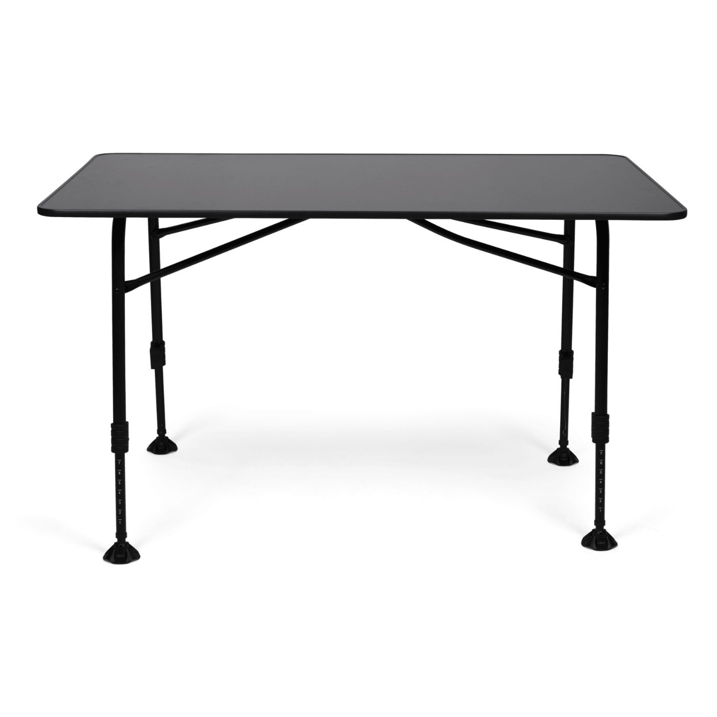 De teleskopiska aluminiumbenen gör det enkelt att justera höjden efter behov och ger stabilitet även på ojämnt underlag. Bordsskivan i slitstarkt material står emot både sol och regn, vilket gör bordet pålitligt i varierande väderförhållanden.