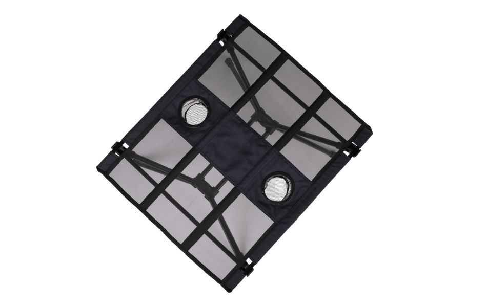Den smarta designen med integrerade mugghållare gör det enkelt att hålla drycken på plats, medan den lätta konstruktionen gör bordet enkelt att bära med sig. Bordet fälls snabbt ihop till ett kompakt format och packas smidigt ner i den medföljande förvaringsväskan.