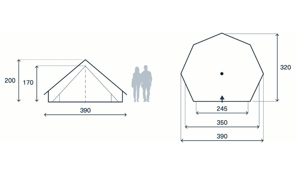Rymligt och lätt tipi-tält (tältkåta) i silikonbelagd polyester med snabb uppsättning och god ventilation. Perfekt för vandring, roadtrips och camping. För 2 personer