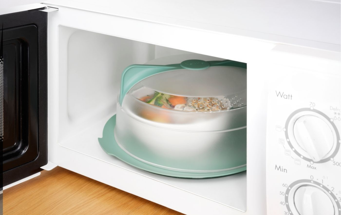 Det smarta mikrolocket har dubbelsidiga handtag som gör det lätt att lyfta av, oavsett hur det har vridit sig under uppvärmningen. Formen passar de flesta tallrikar och är utformad så att locket inte ligger direkt mot maten. Ångan släpps ut kontrollerat, vilket hjälper till att bevara fukten i maten samtidigt som insidan av mikron hålls ren.