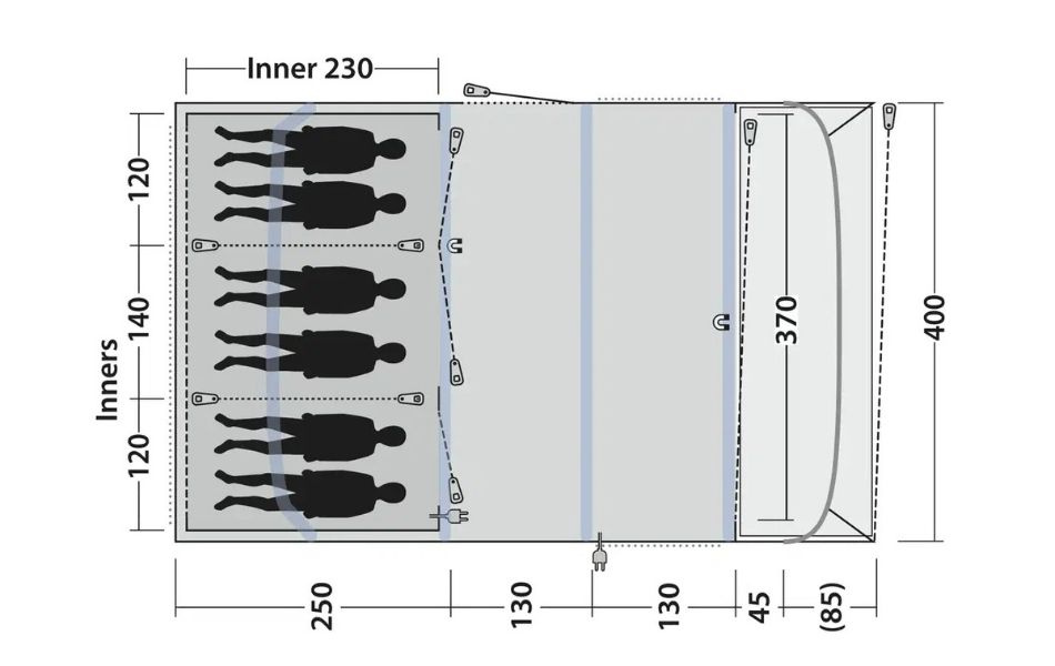 - Integrerat patent-pending Outwell Light System ger elegant och effektiv belysning inuti tältet (drivs via USB-C, strömkälla ingår ej)