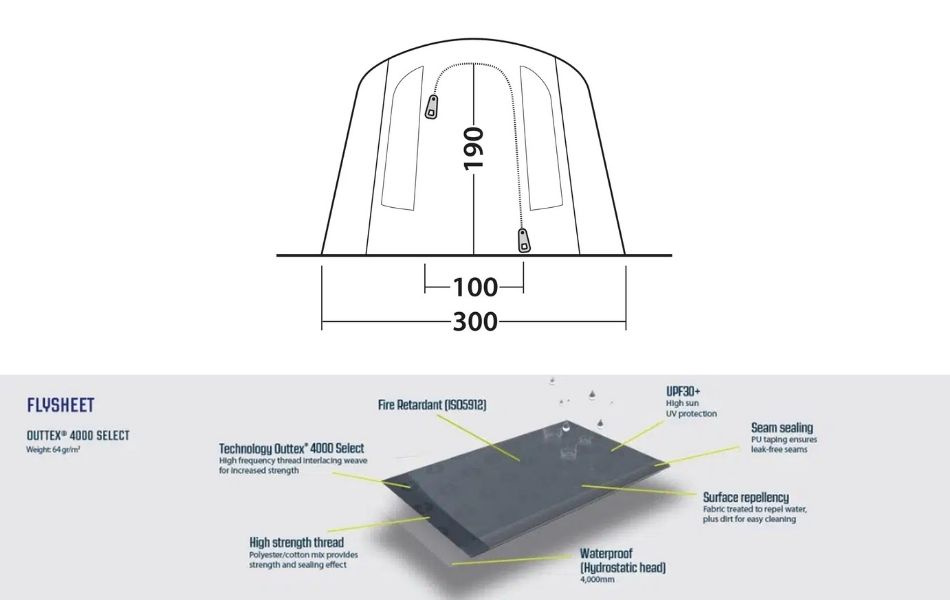 Textilkomposition: Yttertält 100% polyester, Innertält 100% polyester, Mesh 100% polyester, Bärväska 100% polyester