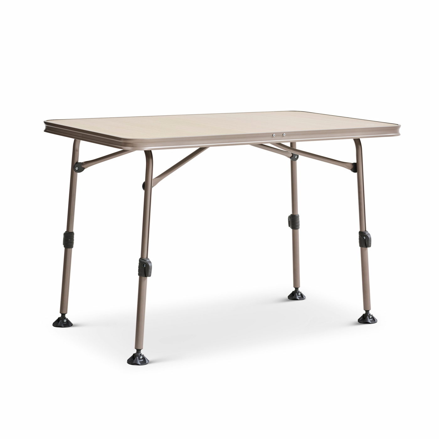 De fyra pulverlackerade benen är ställbara i höjdled, vilket gör det enkelt att anpassa bordet efter underlaget och säkerställa god stabilitet även på ojämn mark. När det är dags att packa ihop bordet fälls det snabbt och smidigt ihop samt förvaras i den medföljande bärväskan. Ett praktiskt, stabilt och lättanvänt campingbord som gör livet på campingen både bekvämare och mer flexibelt.