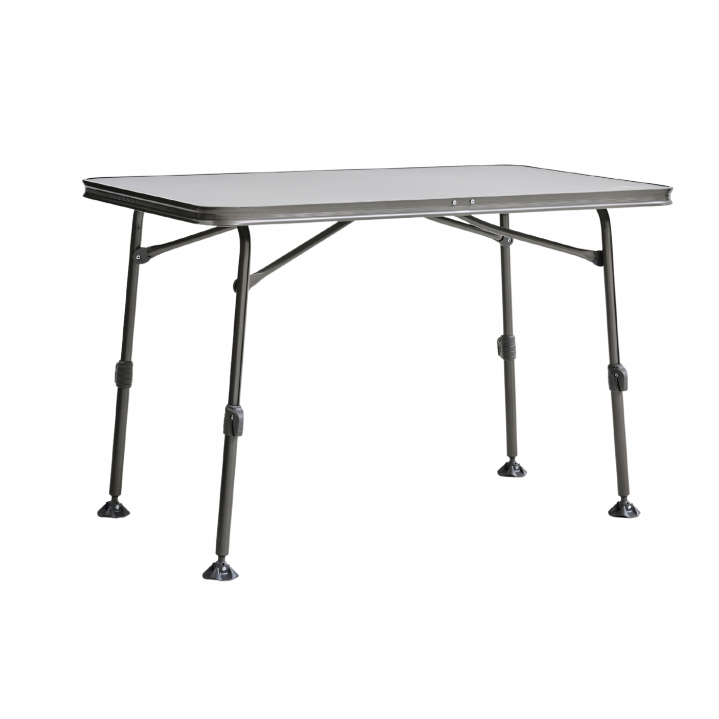 De fyra pulverlackerade benen är ställbara i höjdled, vilket gör det enkelt att anpassa bordet efter underlaget och säkerställa god stabilitet även på ojämn mark. När det är dags att packa ihop bordet fälls det snabbt och smidigt ihop samt förvaras i den medföljande bärväskan. Ett praktiskt, stabilt och lättanvänt campingbord som gör livet på campingen både bekvämare och mer flexibelt.