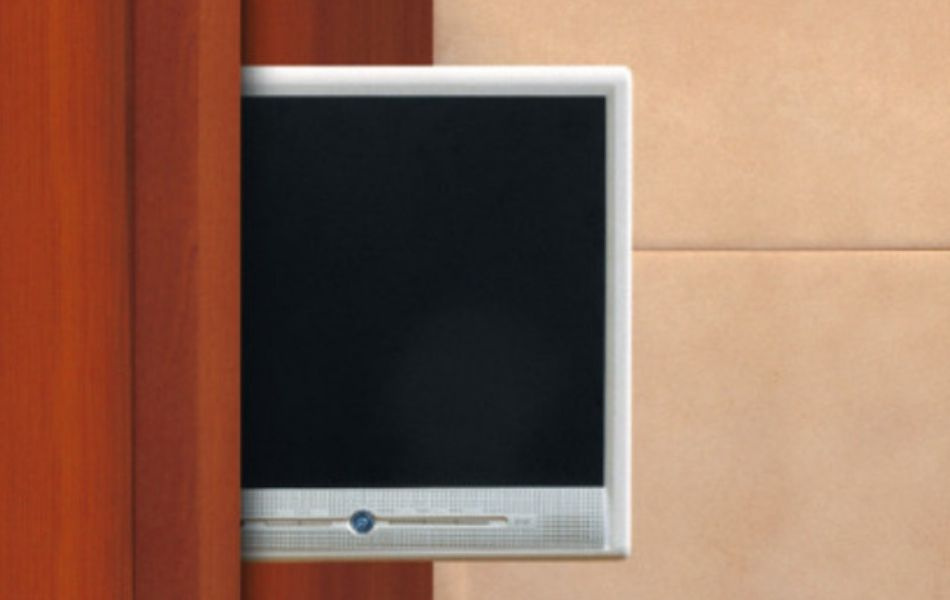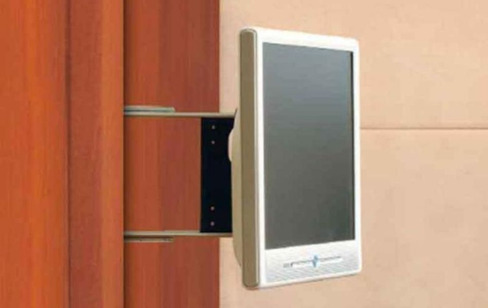 Med sin utdragbara funktion kan du enkelt dra fram TV:n till önskat läge och sedan vrida den upp till 220 grader för optimal visning. När fästet skjuts in låses det automatiskt, vilket gör det säkert under körning.