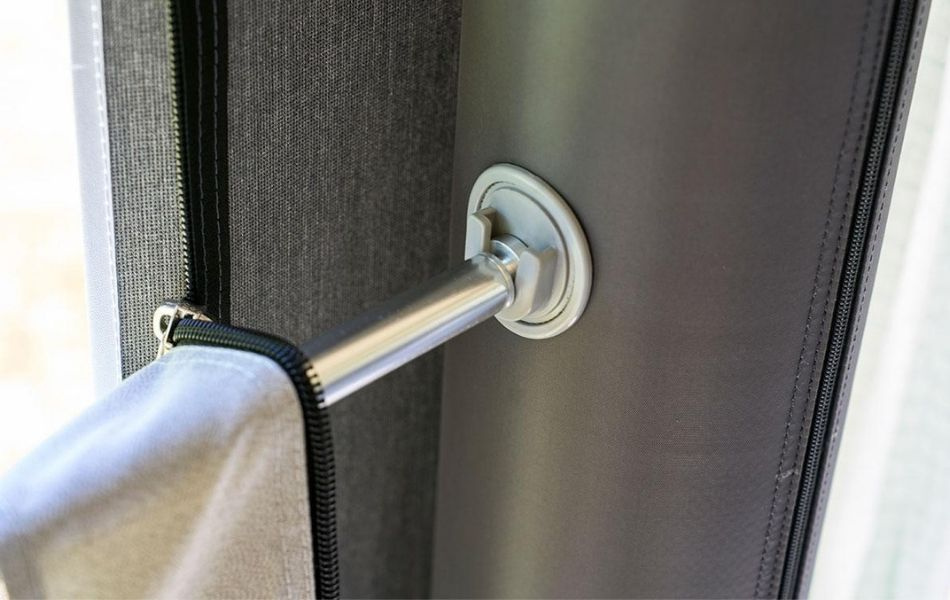 Sidor och fronter kan öppnas helt för att omvandla förtältet till ett stort, öppet soltak, eller delvis för att skapa extra dörrar och ventilation under varma dagar. Integrerade myggnät på sidorna ger ett behagligt inomhusklimat utan att insekter slipper in. Den medföljande verandastången gör det enkelt att skapa en mysig veranda om du vill ha ett delvis öppet utrymme i fronten.