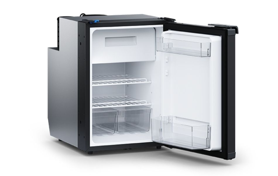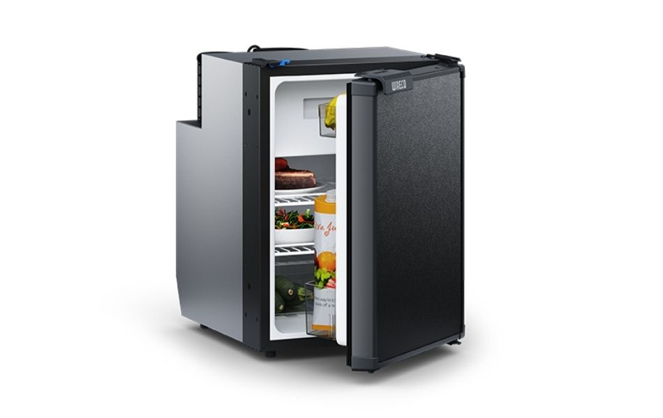 Den energieffektiva kompressorn erbjuder två driftlägen, vilket ger kraftfull kylning på dagen och tyst drift på natten. Dörrpanelen i matt svart är utbytbar och kan anpassas efter fordonets interiör. Temperaturen ställs enkelt via kontrollpanelen inuti kylskåpet, och dörrlåset fungerar även som ventilation utanför säsong.