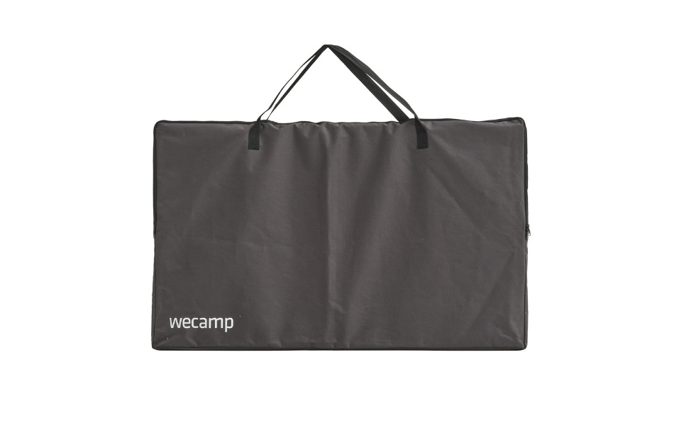 Den mörkgrå bordsskivan ger ett stilrent uttryck och de ledade fötterna, 70 mm i diameter, gör att bordet står stadigt även på ojämn mark utan att skada tältmatta eller sjunka ner i mjukt underlag. Bordet levereras med en praktisk förvaringsväska och ska placeras skyddat, exempelvis i tält eller under markis, då bordsskivan inte tål regn.